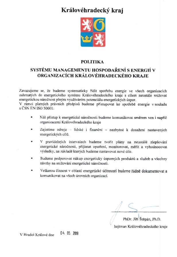 Střední škola hotelnictví, řemesel a gastronomie, Trutnov, příspěvková organizace je zapojena do systému managementu hospodaření s energií v organizacích KHK.