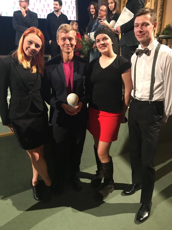 Celorepubliková studentská porota pražského festivalu vybrala snímek #FollowMe jako vítěze středoškolské kategorie (členkou byla i Ester Hadašová z Teplic n.Metují, na snímku s protagonistou a autorem filmu Nicolasem Veulem)