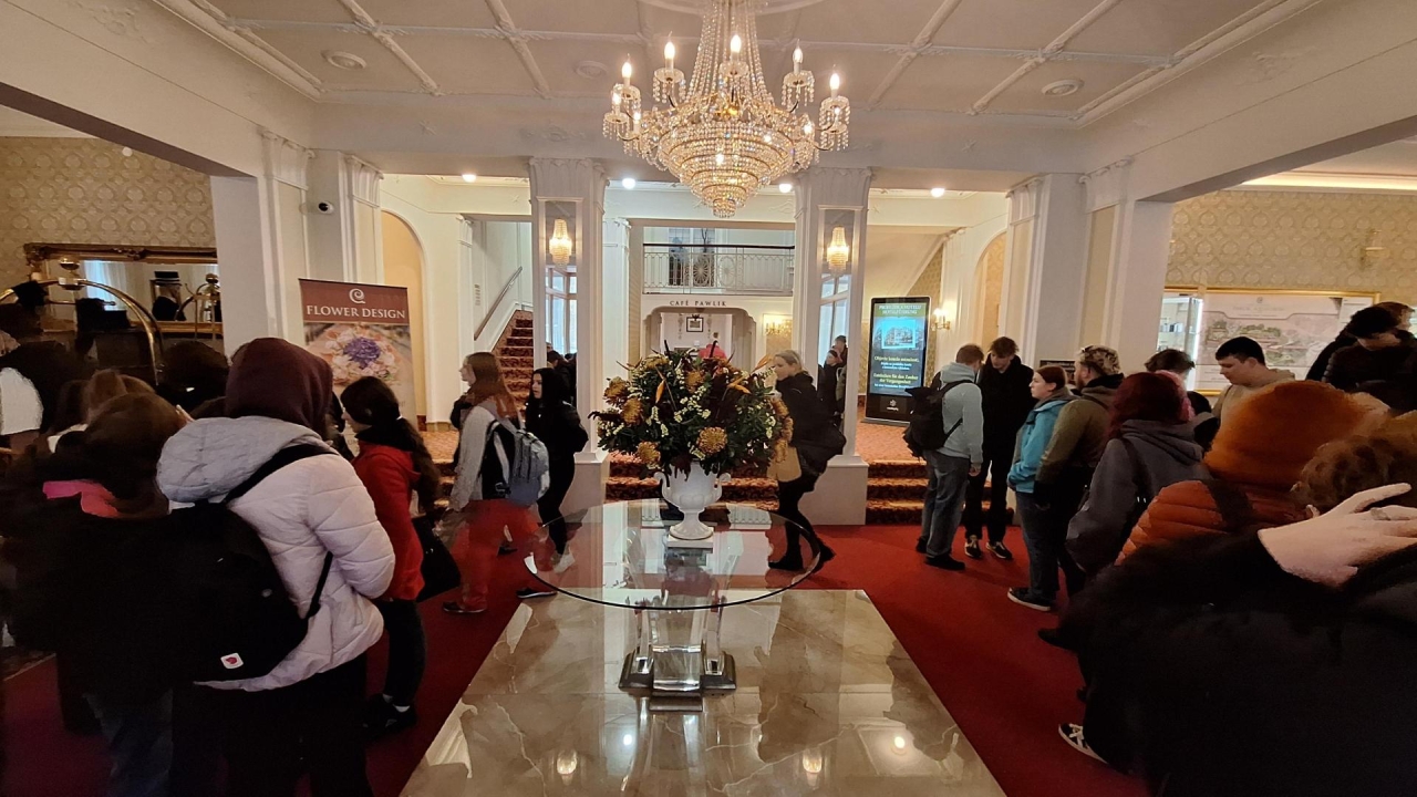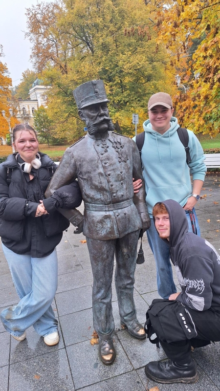 Brzy ráno jsme měli budíček a po snídani jsme zamířili do autobusu, kde jsme cestou do Mariánských Lázní poslouchali zajímavosti o jednotlivých úsecích od studentů 3. a 4. HT. Po příjezdu jsme navštívili hotel Nové Lázně, který byl perfektní! Před exkurzí jsme se zastavili v hotelové kavárně, která byla luxusní. Po skončení prohlídky jsme zamířili kousek nad hotel, kde jsme narazili na zpívající fontánu. Vyšel nám čas přesně tak, že jsme ji i slyšeli zpívat! Dále jsme navštívili Střední hotelovou školu v Mariánských Lázních, kterou nás pan zástupce provedl a ukázal nám školní restauraci, kuchyni, bar a další cvičná pracoviště. Poté jsme zamířili k autobusu, kterým jsme se dopravili do Karlových Varů, kde jsme navštívili luxusní hotel Imperial. Po skončení prohlídky hotelu jsme se vydali na procházku po Karlových Varech, prošli jsme centrum, ochutnali horké prameny, což šlo přežít jen s hrdinstvím, a obdivovali krásné kolonády.