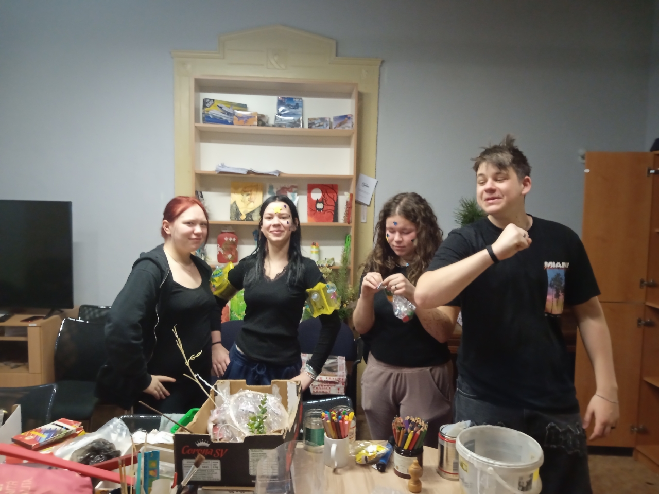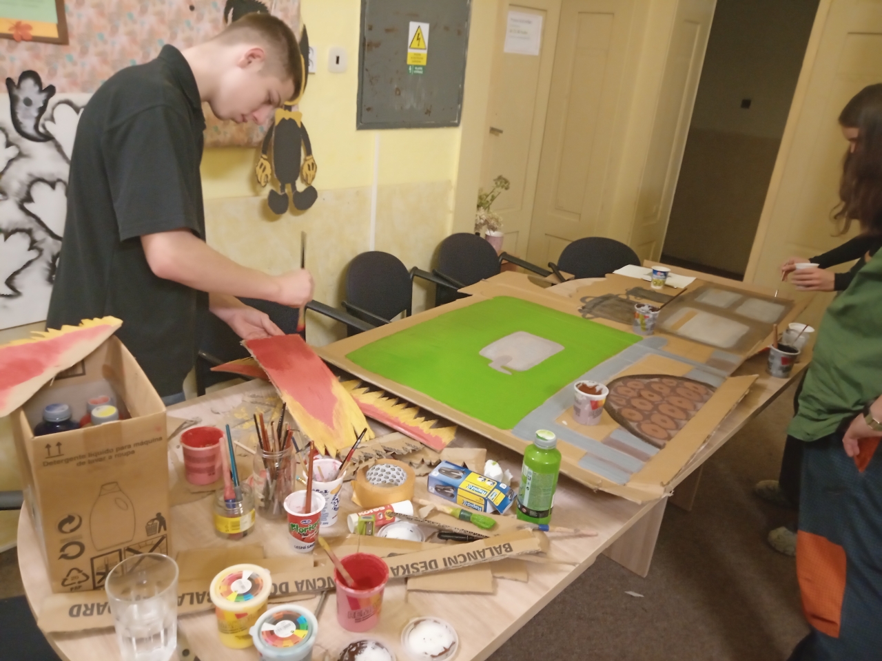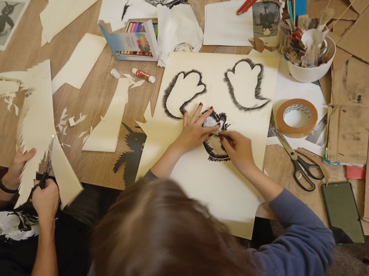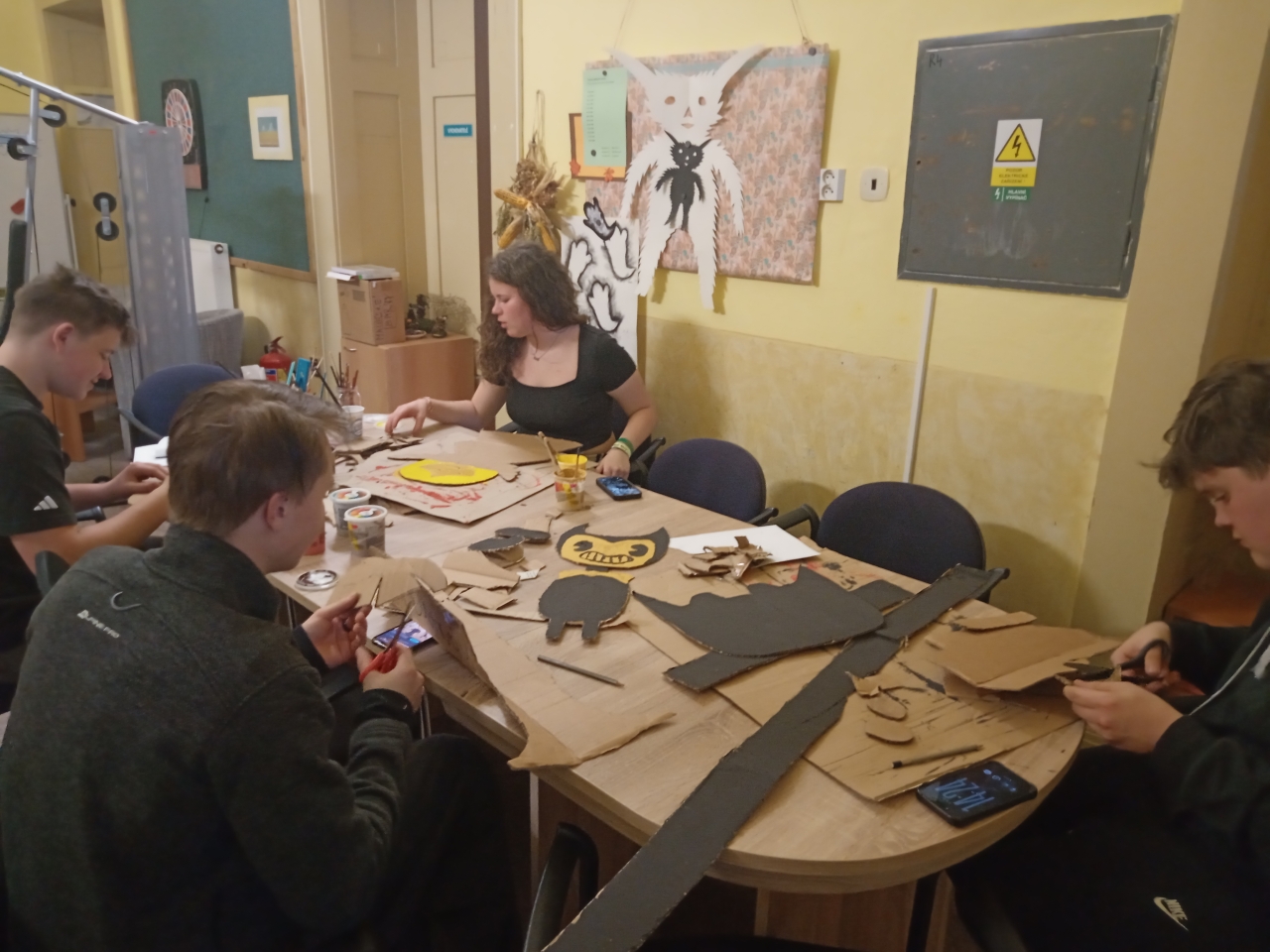 Mezi rušnými událostmi jsme si však dopřáli i klidnější chvíle – u deskových her či antistresových omalovánek. S příchodem adventu jsme se pustili do zdobení vánočního stromečku, vánočních vystřihovánek a také do úklidu výtvarných skříní, aby byl náš tvůrčí prostor opět svěží a připravený.