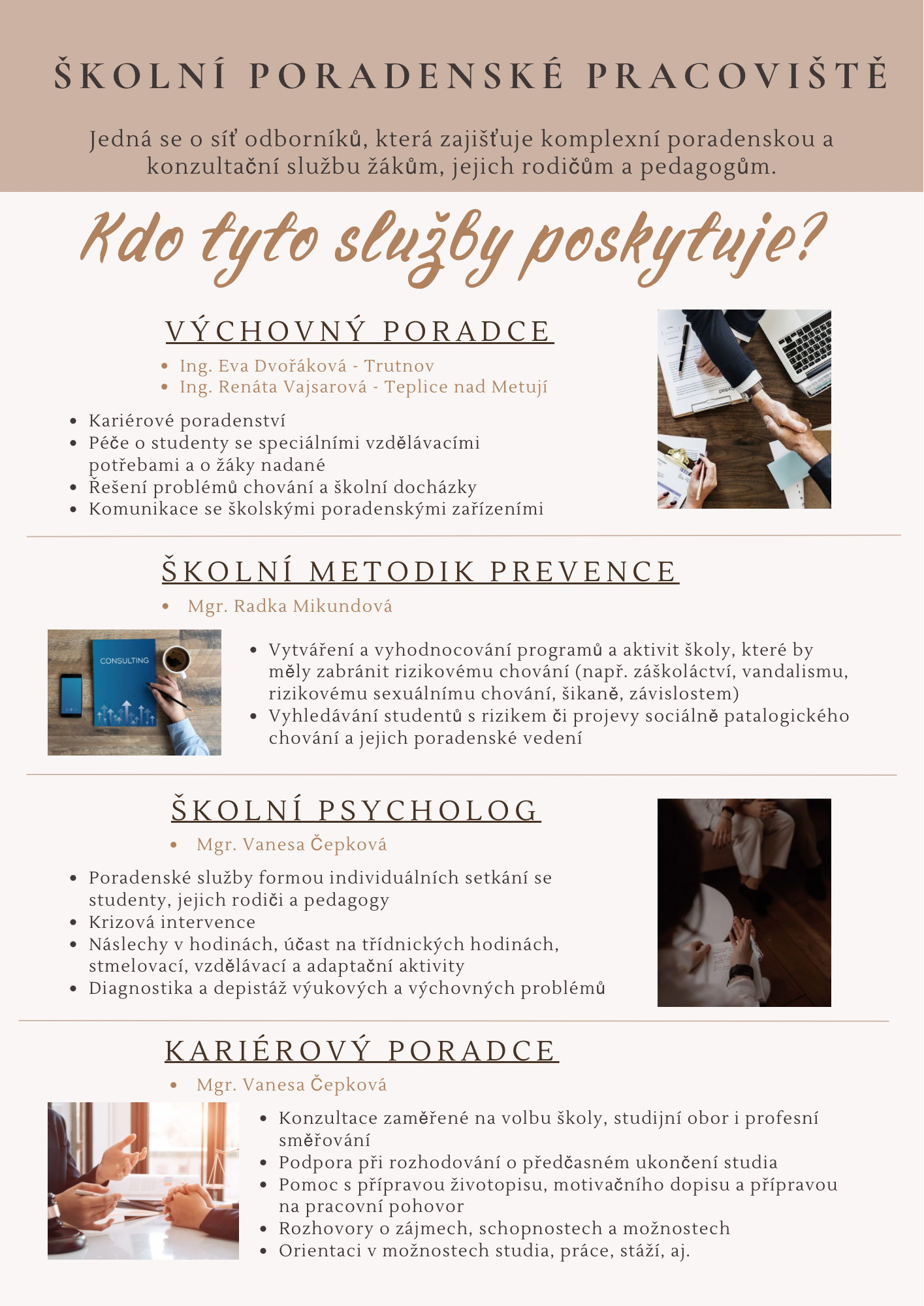 - Ing. Eva Dvořáková jako výchovný poradce pro Trutnov.